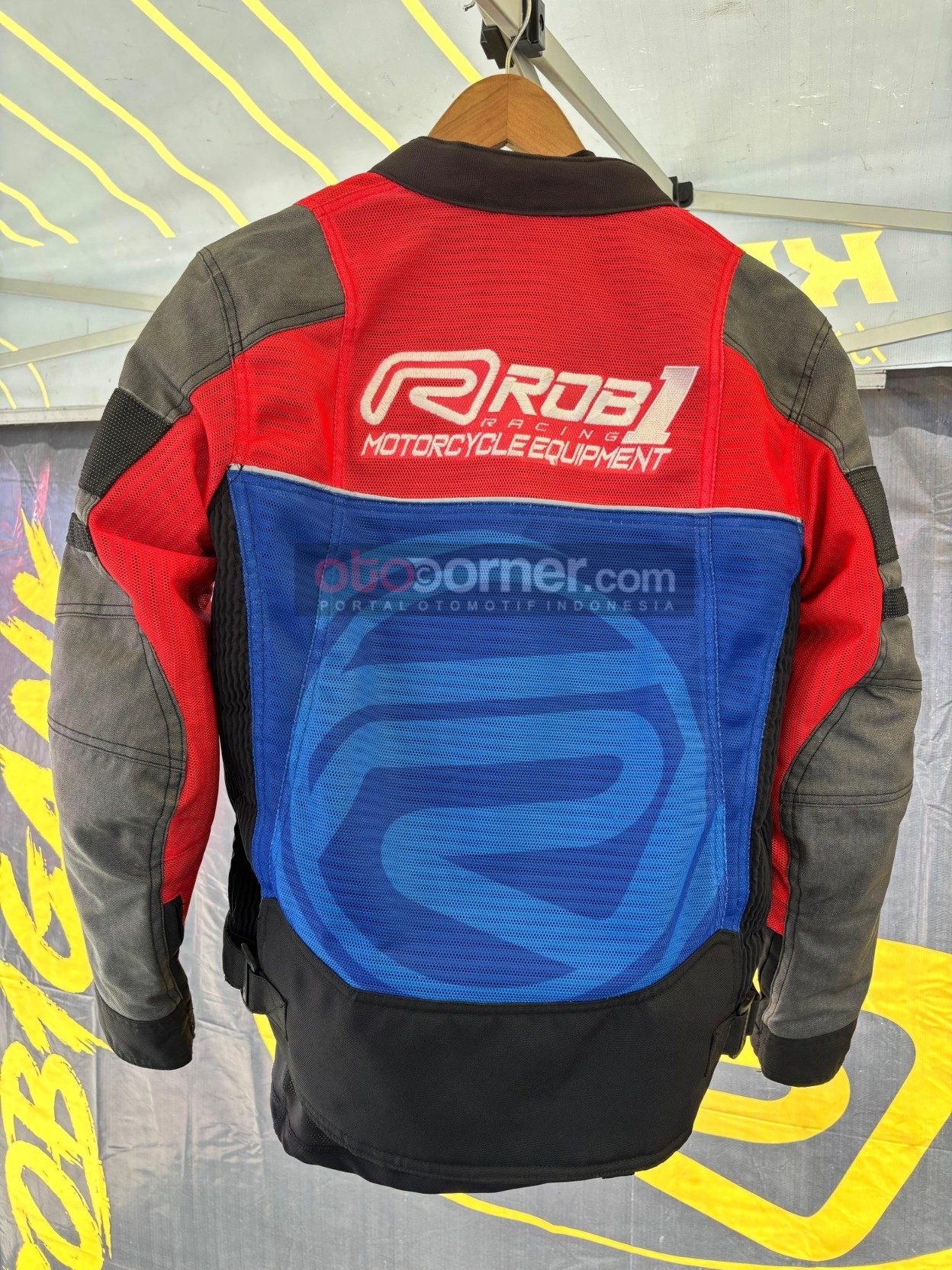 “Kami coba memadukan antara mesh dan bahan anti panas atau anti api dan juga kulit. Sehingga jaket bisa tampil kekinian dan tetap safety” papar Alvian Hadi putra, punggawa ROB1.